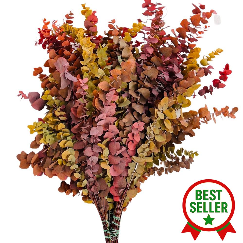 I colori autunnali, come tonalità calde di marrone, arancione, rosso e giallo, rendono questo eucalipto perfetto per creare atmosfere accoglienti e di stagione. È ideale per decorazioni di interni, bouquet, centrotavola o anche per allestimenti di eventi. La sua texture naturale e i colori caldi si abbinano facilmente a molte altre decorazioni autunnali, dando un tocco elegante e duraturo.